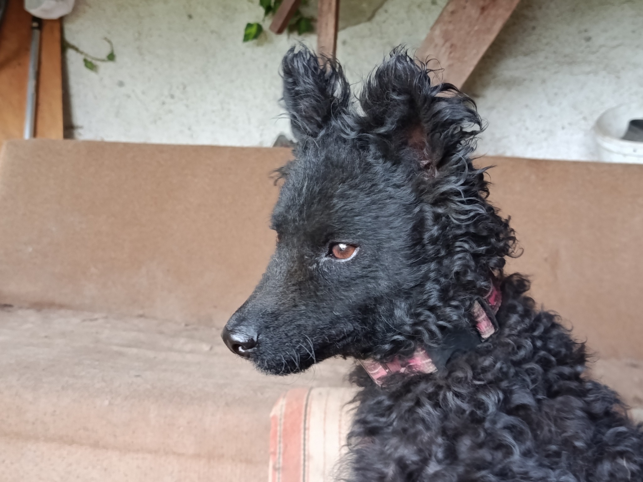 Ajsa 7-8 hónapos extra kicsi (7 kg), de nagyon formás mudi szuka. Aktív, játékos, idegenekkel még bizalmatlan.